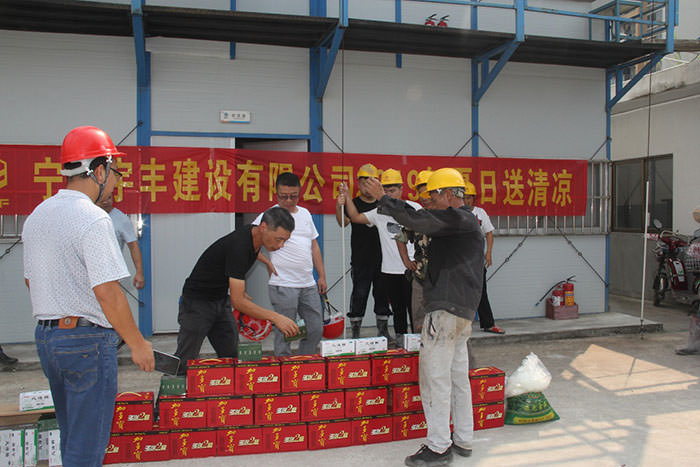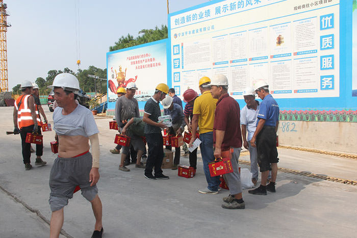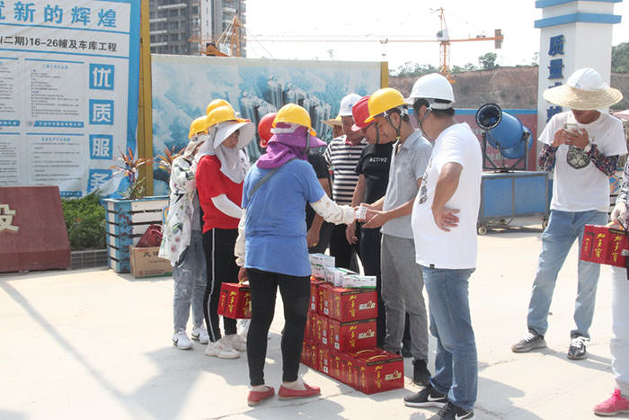 炎炎夏日,骄阳似火,连日来持续高温酷热天气,为切实做好防暑降温工作,确保夏季安全生产工作的开展,进一步关心员工的身心健康,传递公司对员工的关爱,根据吴总指示,公司组织相关部门顶着烈日慰问在酷暑中坚守岗位、辛勤劳动的一线工人,为他们送去清凉茶、冷饮、绿豆、白糖、藿香正气水、风油精等防暑降温物品。